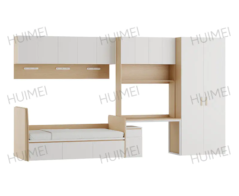 Área de estudo/trabalho (beliche inferior): Este é o cerne do cama de dormitório multifuncional . Normalmente inclui uma mesa espaçosa, estantes de vários níveis e espaço para um computador desktop ou laptop. Esse design garante privacidade e foco para estudar, uma vantagem incomparável aos beliches tradicionais.
