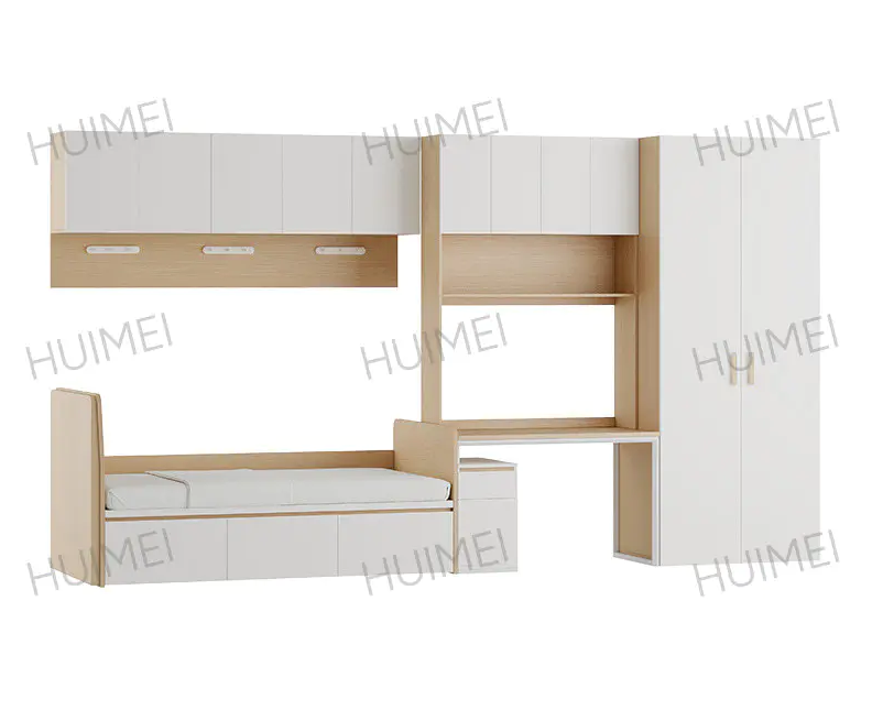 A maior vantagem do beliche com escrivaninha embaixo (também conhecido como " Cama combinada multifuncional ") reside no seu conceito de "zoneamento espacial vertical". Integra a zona de dormir (beliche superior) com a zona de estudo e arrumação (mesa inferior e armário), conseguindo uma disposição funcional independente de “uma pessoa, uma área”. Este projeto é particularmente adequado para dormitórios universitários padrão com 4 a 6 pessoas, proporcionando a cada aluno um espaço pessoal relativamente privado, mantendo ao mesmo tempo a luminosidade geral e a abertura do dormitório. Para dormitórios com espaço limitado, é um modelo para melhorar a eficiência do espaço.